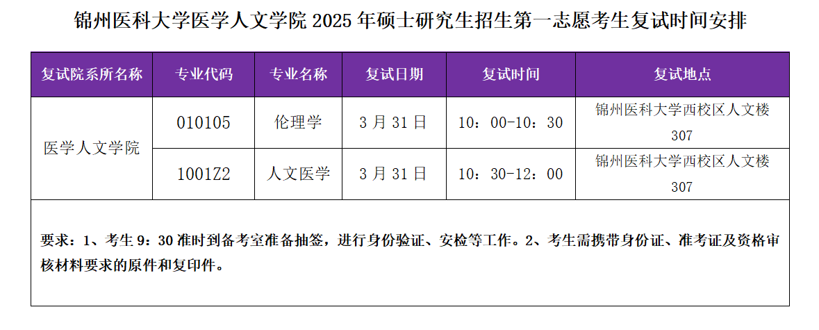 考试科目:详见《关于bv伟德国际19462025年硕士研究生招生第一志愿考生复试名单和工作安排的通知》(https://yjsc.jzmu.edu.cn/info/1131/4949.htm)