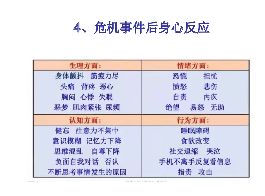 然后,段笑那从访谈理论、技术和方法三个方面给予指导,具体包括问卷设置和人群划分;如何确定访谈目标、评估与分类、访谈技术等;危机事件后身心反应、抑郁症典型症状、自杀危机风险评估等严重心理问题识别与评估等。