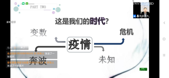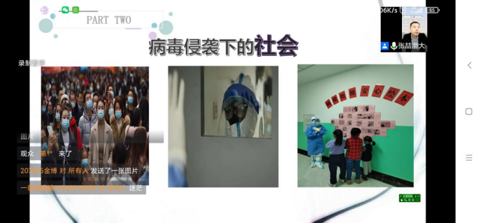 张喆从“自我介绍”、“我们的时代”、“我们&照片”、“照片音乐情感表达”四个方面分享了自己留学韩国圆光大学、攻读艺术治疗学博士的心路历程;自己坚守在校园2个多月、爱人作为北方军团总医院护士驰援吉林、留下4岁的女儿无人照看的辛酸。张喆说,当前我们处于新冠肺炎第四轮疫情大流行的时代,党和国家秉承“人民至上”的理念,为了老员工的生命安全,实行封校管理。面对这种情况,作为新时代的老员工应该抱着感恩的心,积极配合公司、地方政府做好疫情防控工作,通过我们的坚守共同迎接疫情消散的美好时光。