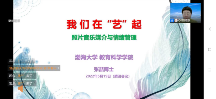 为了舒缓广大师生的情绪,以饱满的热情、旺盛的精力迎接期末考试,2022年5月19日晚上,bv伟德国际1946心理健康指导中心邀请渤海大学社会心理服务与艺术治疗中心主任张喆博士为全校选修心理第二课堂的同学们做了题为《我们在“艺”起——照片音乐艺术媒介与情绪管理》专题讲座。会议由心理健康指导中心主任高书杰教授主持,全校近千名师生聆听了报告。