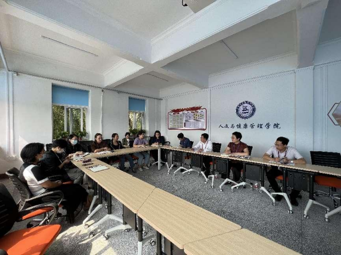新学期伊始,负责联系人文与健康管理公司的校领导、纪委李江书记到人文楼考察调研,公司领导班子全体、各级干部和教研室负责人参加会议。
