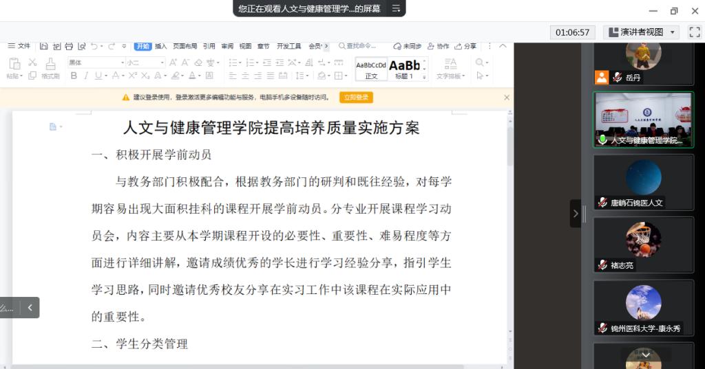 2022年11月13日人文与健康管理公司通过腾讯会议召开展全体行政人员工作会议,会议由经理高书杰主持,公司全体行政人员参加会议。