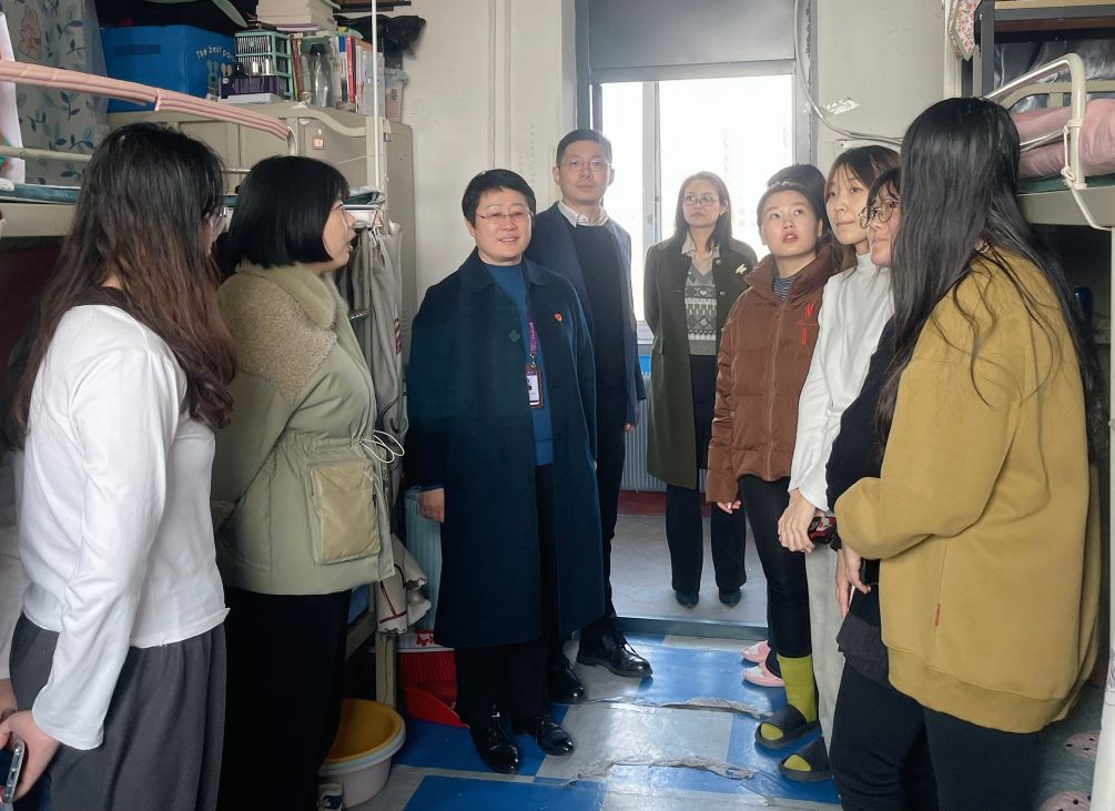 新学期伊始,为了解公司员工在校的住宿条件和生活状况,排查宿舍安全隐患给同学们创造一个良好的校园生活环境,2月27日下午2点,公司经理高书杰、党总支书记唐峭石、主管员工工作副书记郑贺、员工工作办公室副主任孟令弟老师逐一走访了公司员工宿舍,慰问返校员工。