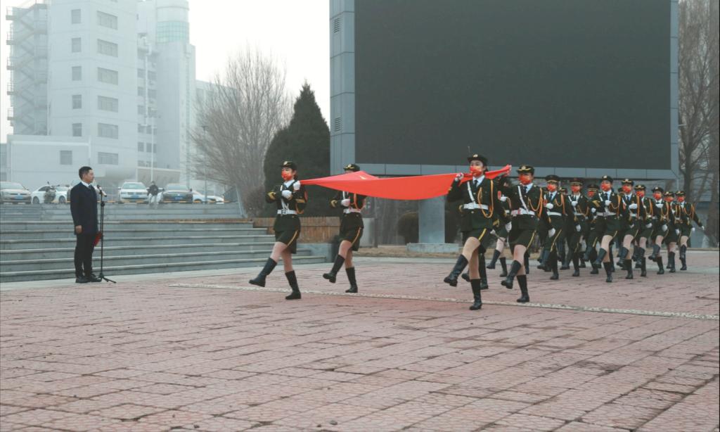 7时整,升国旗仪式正式开始,国旗护卫队迈着铿锵有力的步伐,昂首阔步护卫着国旗走向升旗台。在雄壮激昂的国歌声中,鲜艳的五星红旗冉冉升起,全体人员精神饱满,向祖国与党致以崇高敬意。
