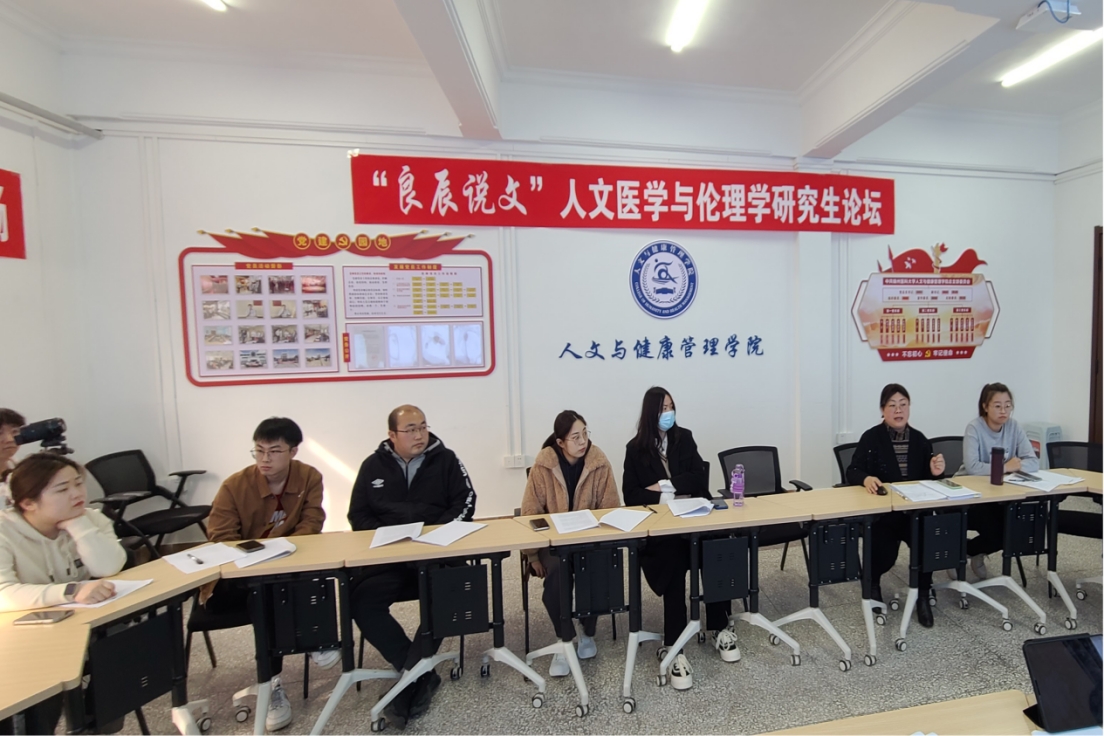 为进一步提高研究生学术能力,培养研究生学术思维,3月24日,人文与健康管理公司举办2023年第一期“良辰说文”人文医学与伦理学研究生论坛。本次论坛采取线上线下相结合的方式进行,公司人文医学与伦理学教研室主任戈丽薇及相关老师出席论坛,一、二年级研究生10余人参加论坛,论坛由第一期轮值主席周书翰主持,会议秘书聂巨阳记录。