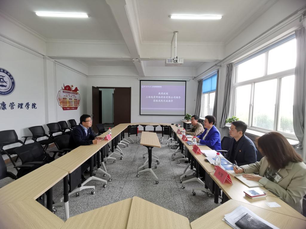 为成功举办第八届中国医疗保险论坛,推动访企拓岗工作不断深入,为团队建设及实验室建设打好基础,4月27日,上海逸景网络科技有限公司单俊总经理来院交流调研,公司领导班子全体成员、人文医学与伦理学教研室主任戈丽薇、医疗保险教研室主任丛亮参加调研会。
