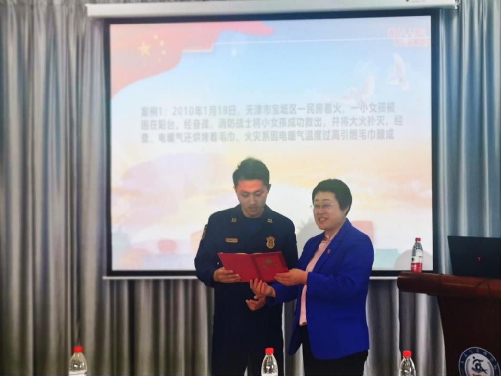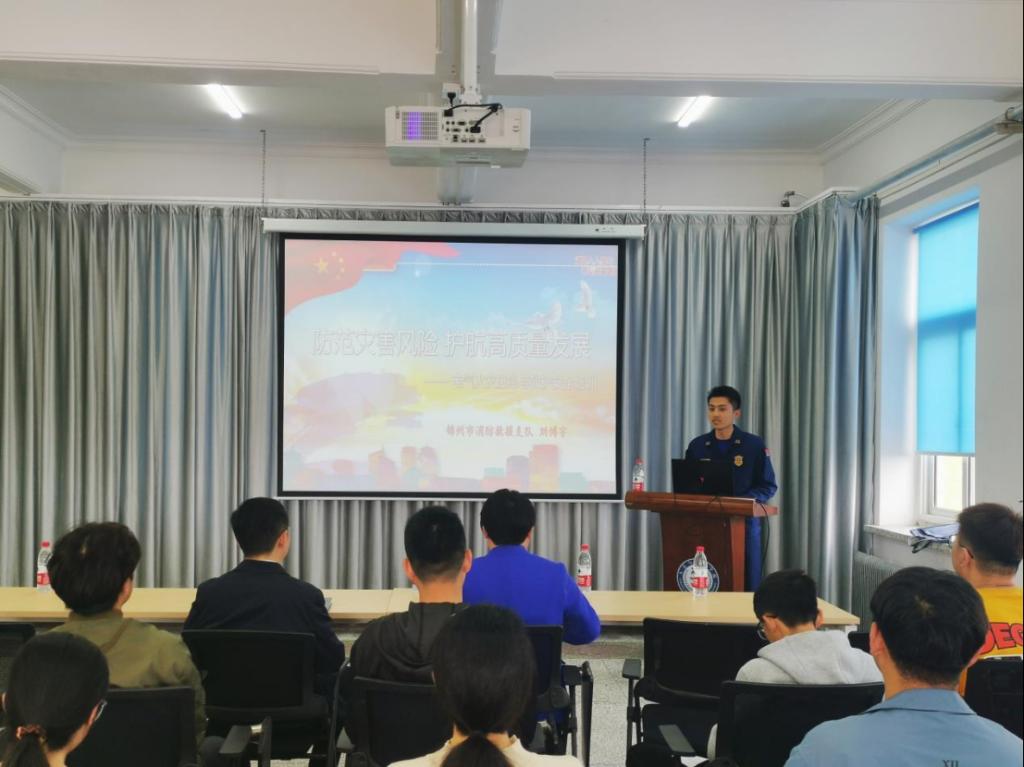 为提高公司师生对电器火灾的认知程度,提高风险意识和电器火灾应对能力,公司5月9日聘请锦州市消防救援支队双羊特勤站副站长刘博宇为公司师生开展题目为《防范灾害风险 护航高质量发展——电气火灾应急与救护安全培训》的安全知识讲座。