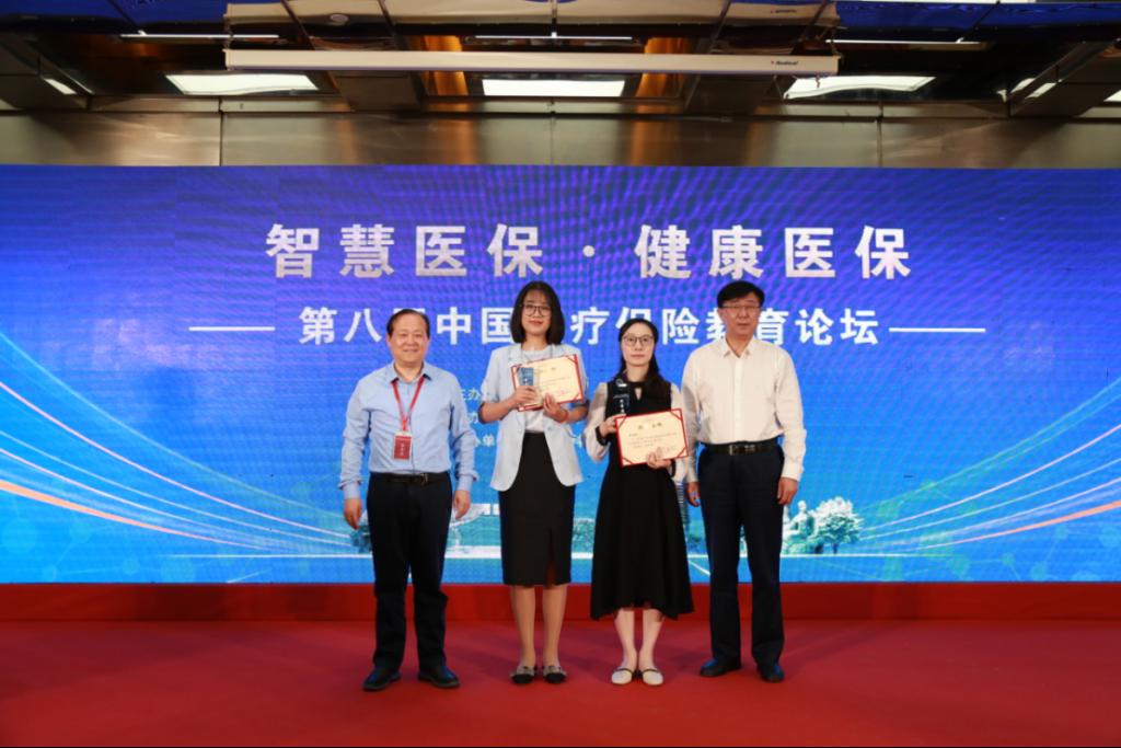 丁维光与周绿林教授一同为“乐凡杯”全国高校医疗保险专业青年教师教学大赛特等奖获奖者颁奖。