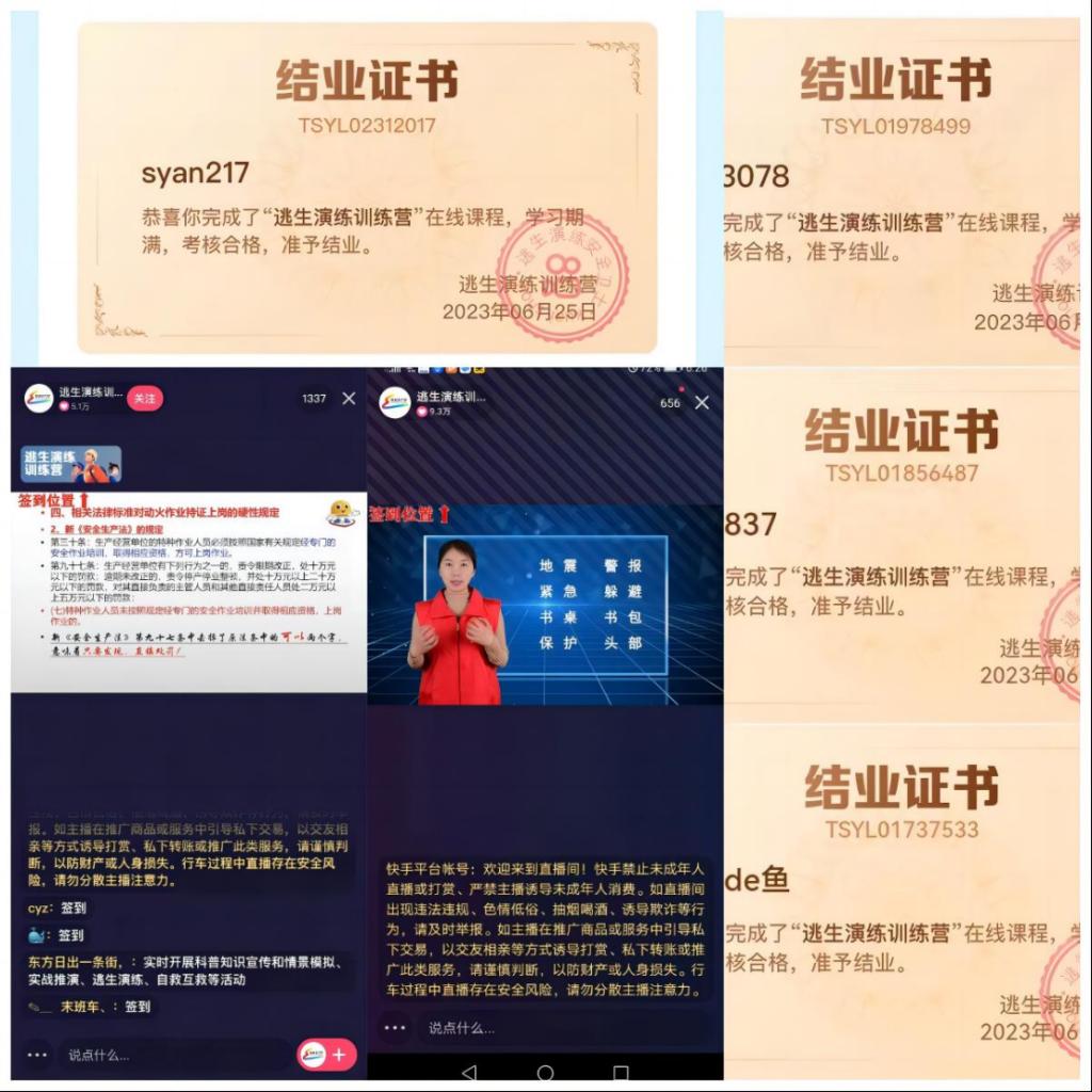 为进一步扩大应急科普人群覆盖面,人文与健康管理公司组织全院师生参与“人人讲安全、个个会应急”网络知识竞赛,以及线上“逃生演练训练营”活动,全院师生积极响应,营造出人人增强安全意识、个个学会查找隐患的浓厚氛围。