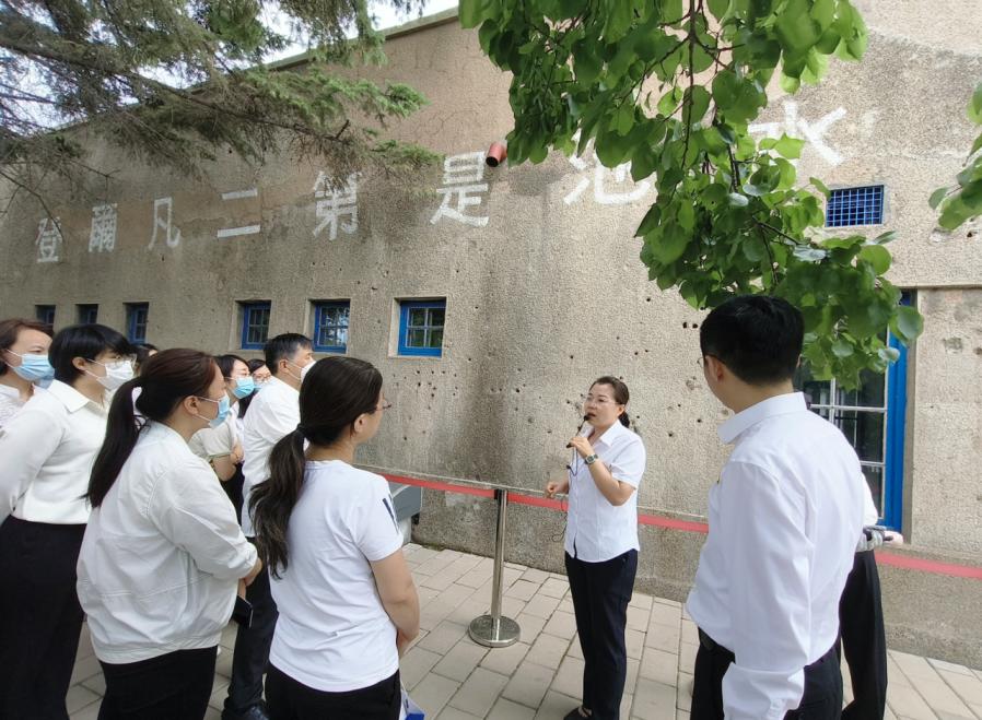 仪式结束后,全体党员到配水池战斗遗址内参观,大家在梁世英烈士孙女梁丹丹老师的带领下,学习那段热血与忠诚铸就的历史。