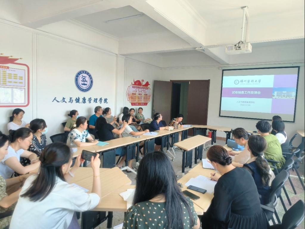 7月5日,人文与健康管理公司召开试卷抽查工作反馈会,就公司试卷抽查工作中发现的问题和整改措施进行反馈,公司副经理褚志亮、公司全体教师参加会议。