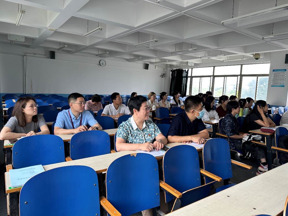 伟德国际victor1946党委巡察办公室主任陈军、公司领导听取了戈丽薇教师讲授的《医学伦理学》课程。在听课中,边听边看边记,在了解讲授内容的同时,认真观察员工的学习状态。在第一节课程结束后,在人文楼307会议室召开2023-2024-1学期开学首日听课反馈会议。