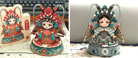 活动中,两位老师现场为师生演示京剧人物的化妆过程,并就其步骤、要领和服饰道具进行了详细地讲解,由点到线,由线到面,娓娓道来。师生们跟随老师的讲解,认真观察装造的变化,当看到两位模特以杨贵妃、虞姬的造型出现在大家面前时,师生无不赞叹国粹之美。之后,张老师带着师生现场教学京剧人物在舞台上的经典动作,现场气氛非常活跃。活动最后,公司分工会为参加活动的师生准备了京剧人偶手工,大家自己动手,搭建出一个个活灵活现的京剧人偶。