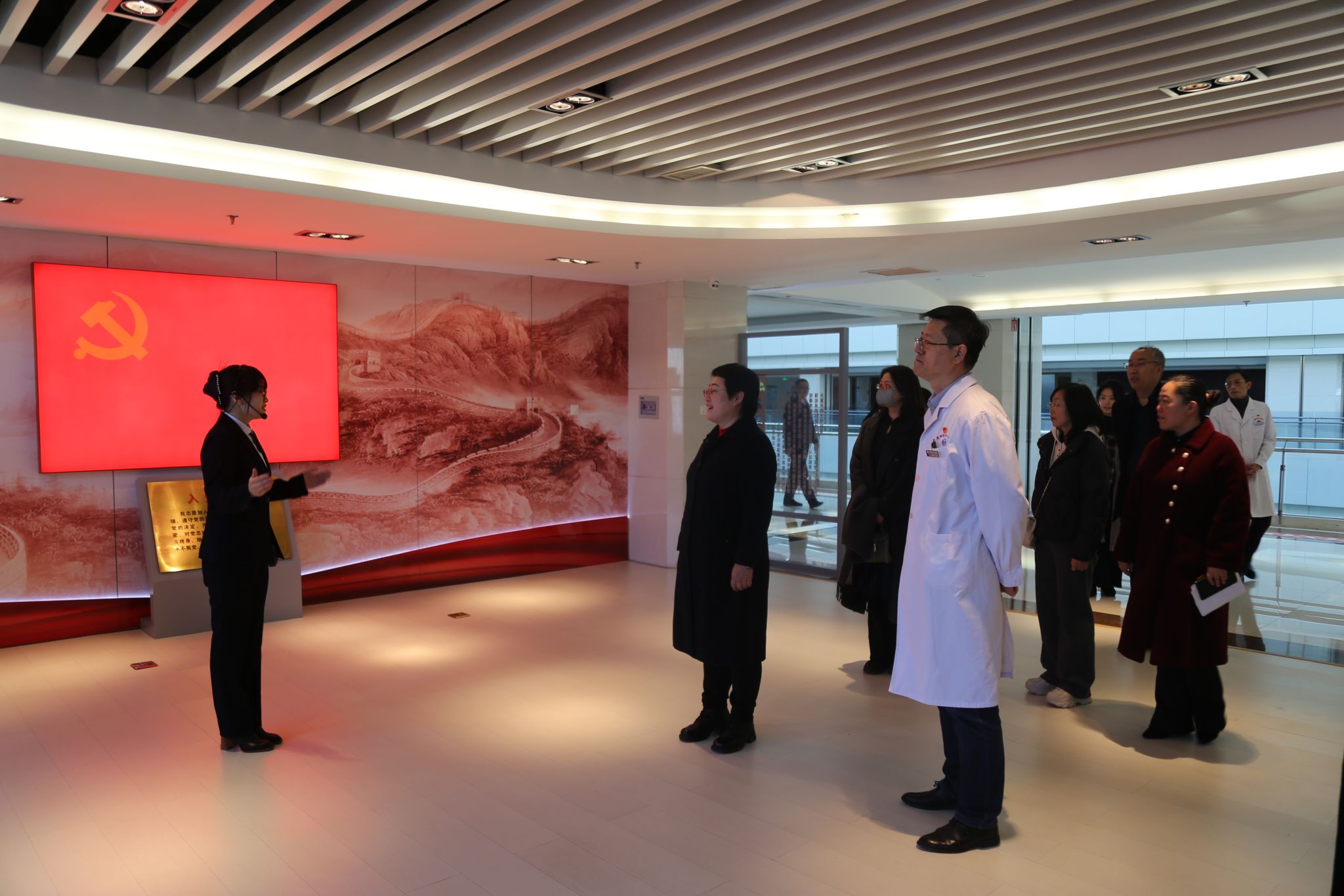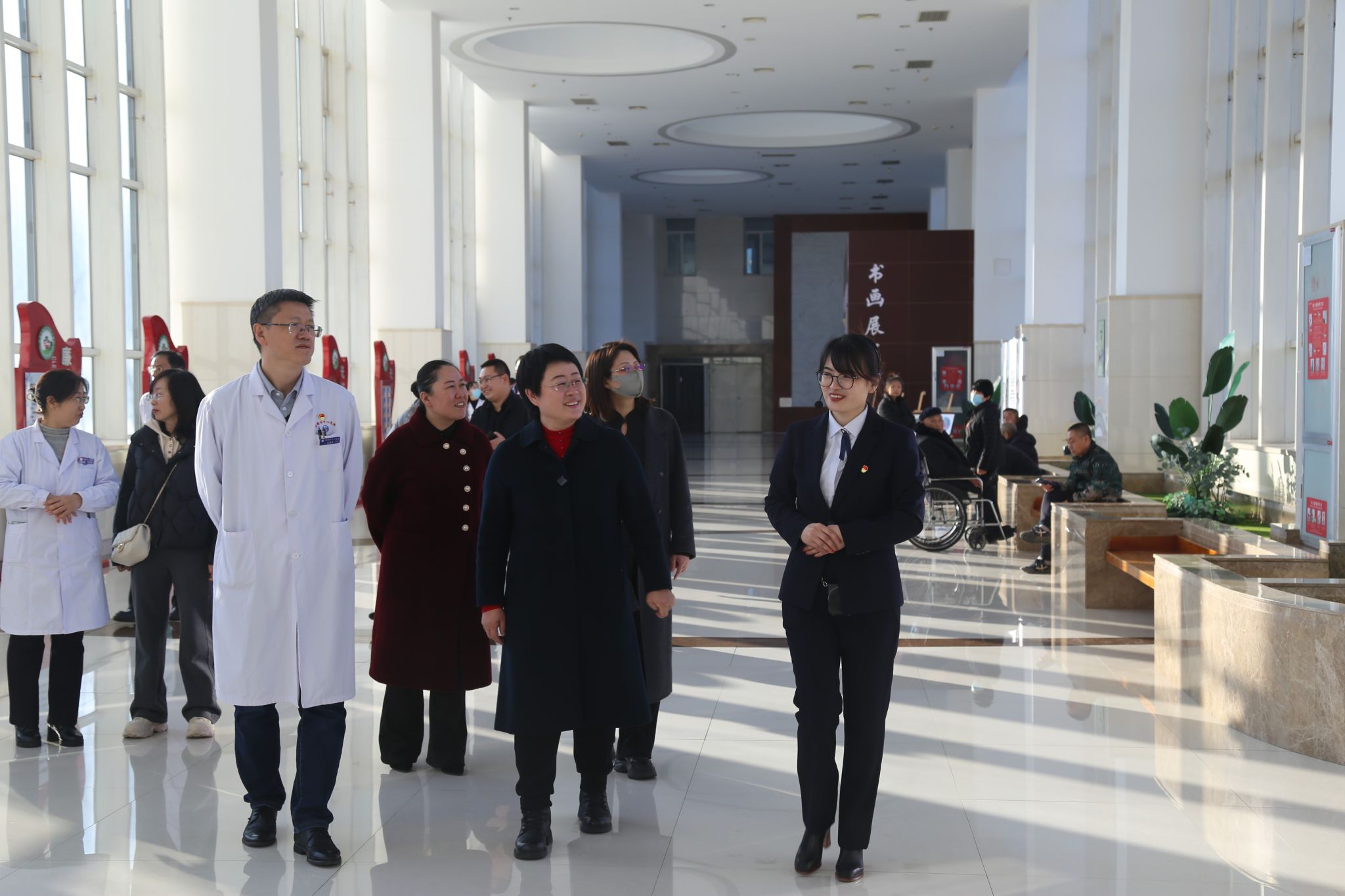 在医院副经理吕国良及相关科室人员的陪同下,调研团一行参观了医院院区,深入了解盘锦市中心医院历史沿革和整体情况。