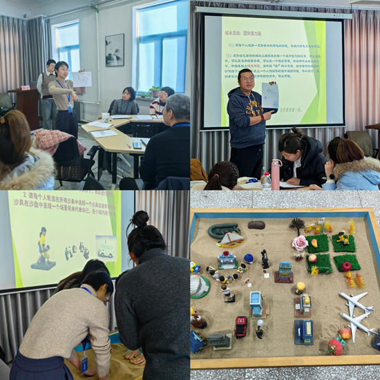 培训会上,三位专家分别从沙盘游戏基础理论与准备、沙盘游戏实操流程与初步体验、沙盘游戏深入分析与案例探讨,以及理解沙盘能力专业题库演练四个主题,详细介绍了沙盘游戏的起源、历史、内涵、理论知识及基本操作,让老师和员工们懂得沙盘游戏作为非语言心理治疗技术的重要价值。