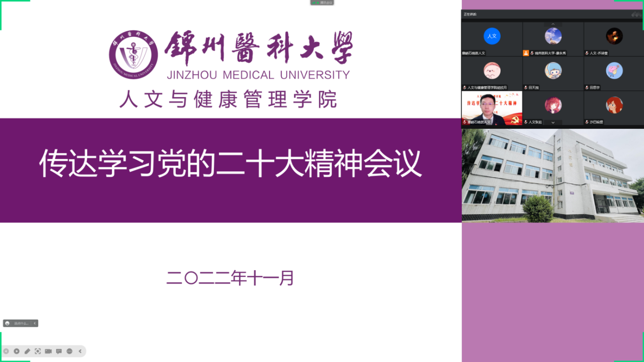 11月3日下午,人文与健康管理公司举行传达党的二十大精神专题学习大会。会议采取线上线下同步开会方式进行,公司全体教职工、员工党员等90余人参加会议,会议由伟德国际victor1946党总支书记唐峭石主持。