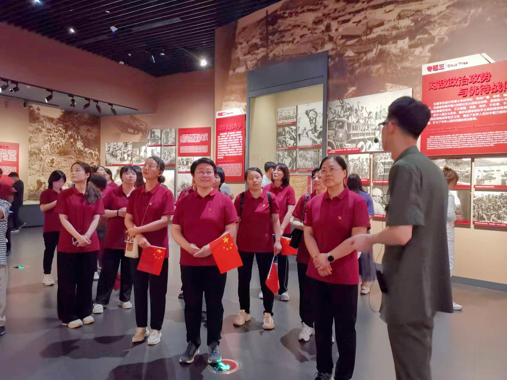 “雄赳赳,气昂昂,跨过鸭绿江……”伴随着铿锵激昂的中国人民志愿军战歌,医学人文全体党员师生在讲解员的带领下,先后参观了抗美援朝战争厅、抗美援朝运动厅、中朝友谊厅、中国人民志愿军英烈厅、纪念厅和全景画馆。一同回顾了74年前抗美援朝战争中那段艰苦卓绝的峥嵘岁月,启发和鼓舞了全体党员师生为祖国的繁荣富强而努力奋斗。