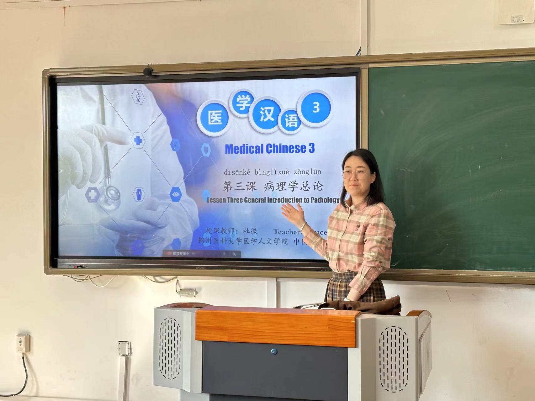公司领导听取了杜薇教师讲授的《医学汉语3》课程。在听课中,边听边看边记,在了解讲授内容的同时,认真观察员工的学习状态。